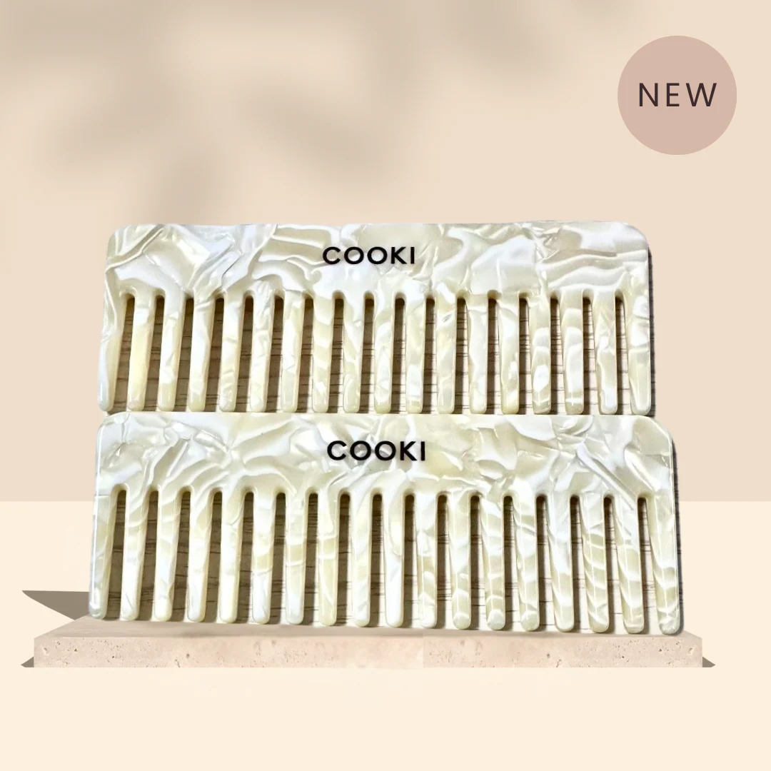 Our Cream Acetate Comb Designed to glide effortlessly through your hair, perfect for detangling wet or dry hair gently.